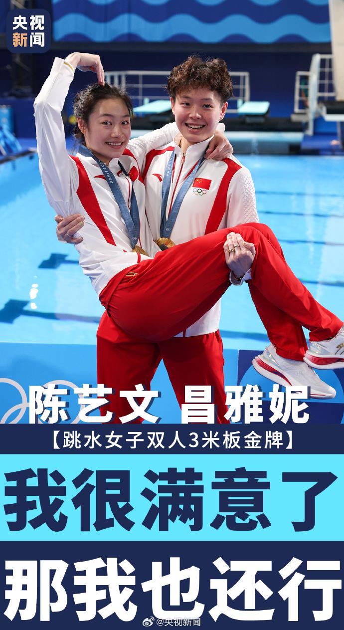 賽后,全紅嬋掛在陳芋汐身上退場時,復刻經典慶祝動作:“小小巴黎,拿捏!”