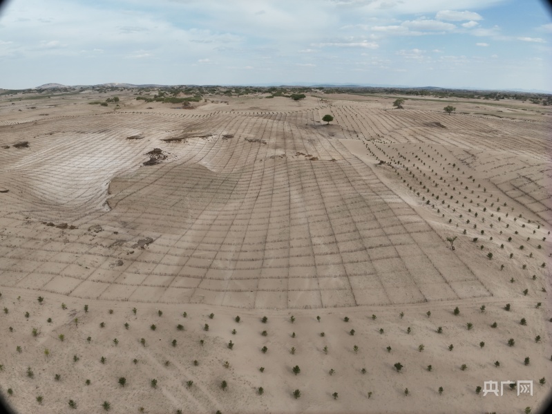 “像這樣的科技創(chuàng)新應用在莝草山治沙探索中還有很多?!睋?jù)介紹,該旗大面積的草種飛播、自主研發(fā)的沙障開溝機、合作定制草種播撒機械、核心區(qū)鋪設的滴灌帶、達來諾日鎮(zhèn)治沙區(qū)高聳的視頻遠程管護系統(tǒng)……在沙地治理中,科技力量使綠色得以加速成勢。
