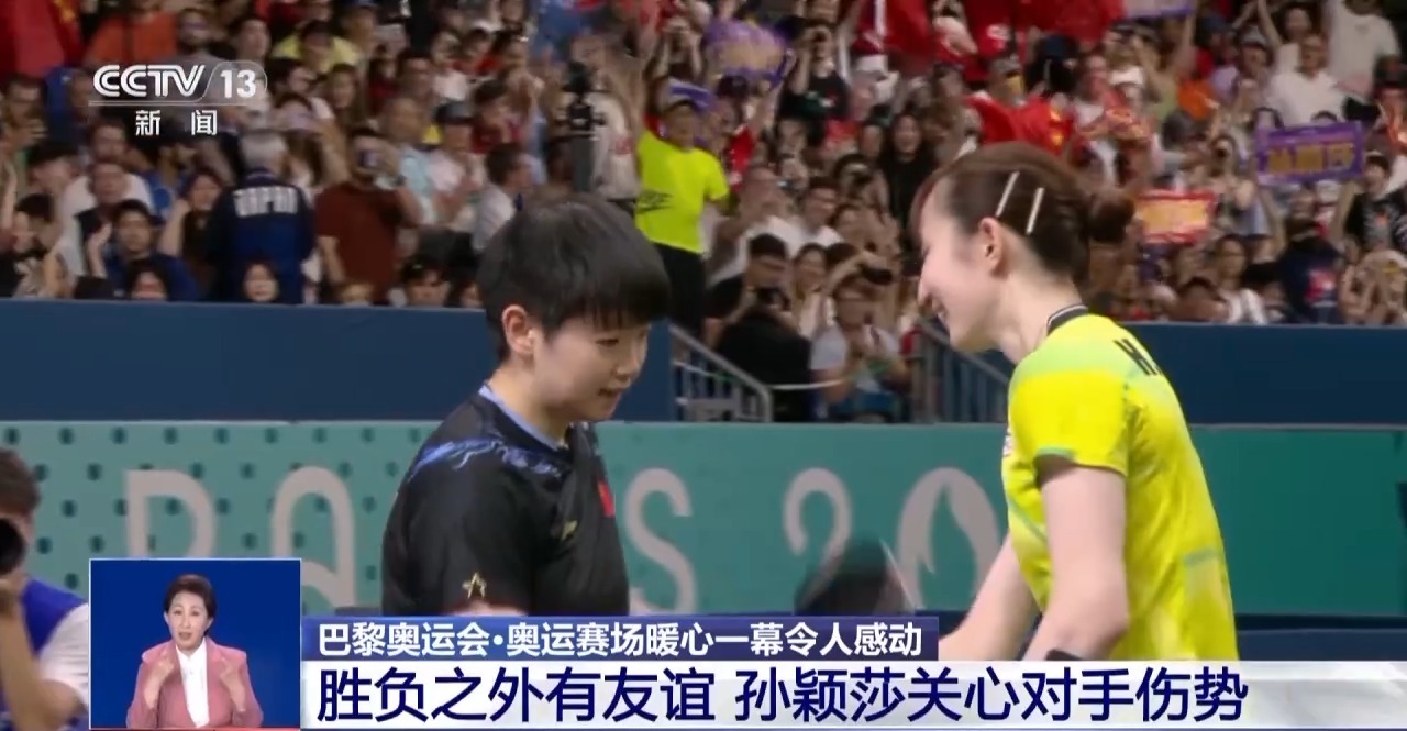 乒乓球女單半決賽,孫穎莎與日本選手早田希娜狹路相逢,技高一籌的莎莎以4∶0橫掃對手晉級。比賽結(jié)束之后,孫穎莎沒有慶祝就匆匆忙忙走到早田身邊,關(guān)切地詢問她手腕的傷勢。一個小小的暖心之舉,讓日本女孩大受感動。孫穎莎也用自己的行動詮釋了“友誼第一,比賽第二”的體育精神。