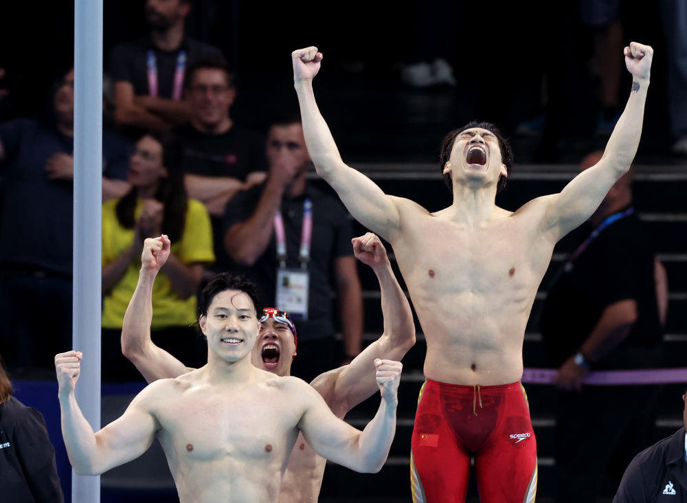 巴黎奧運會游泳賽場最后一個比賽日,男子4X100米混合泳接力決賽,當潘展樂完成反超,幫助中國隊力壓壟斷該項目40年的美國隊和占盡主場優勢的法國隊,以3分27秒46的成績奪冠時,現場的歡呼聲達到了頂峰。