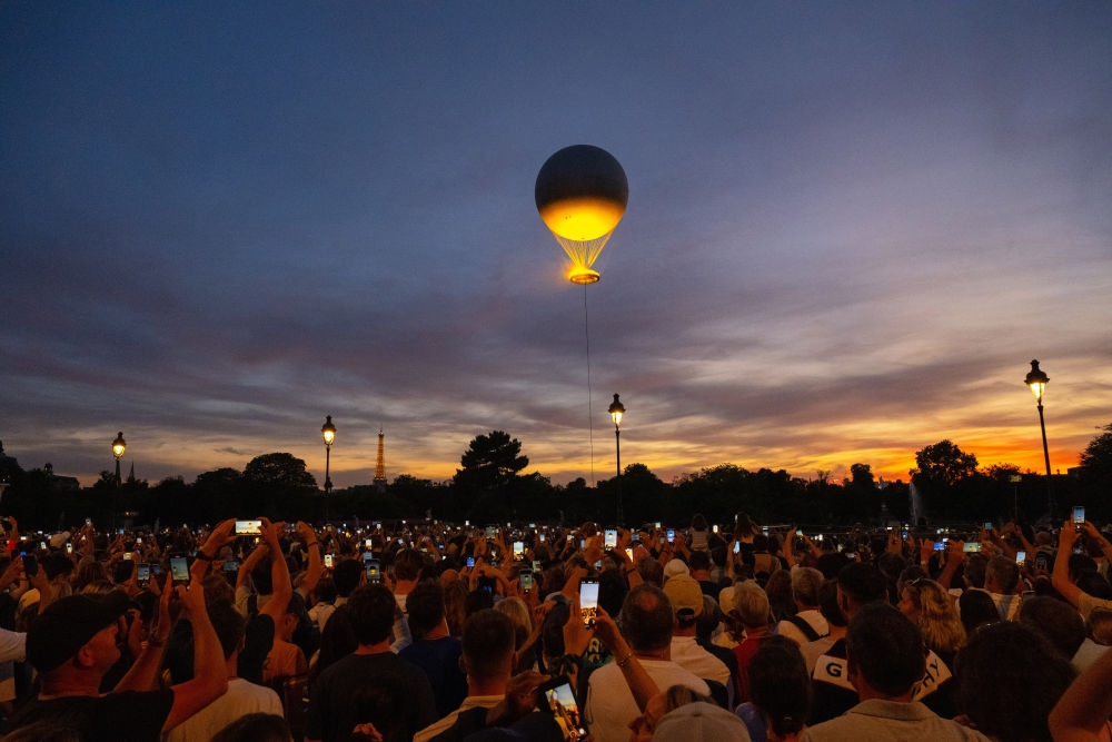 歷史建筑與現代藝術的融合彰顯法式浪漫。埃菲爾鐵塔上的燈光秀劃破夜空。特羅卡德羅廣場上,神秘人將火炬交給法國傳奇球星齊達內,不久后,杜樂麗花園內的主火炬——一個直徑7米的火焰環,頂部是一個高30米、直徑22米的系留氣球,被“點燃”。