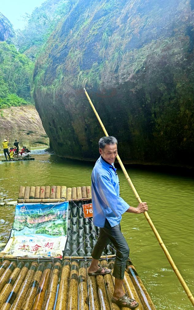 像黃盛騰這樣常年固定的艄公或艄婆,在上清溪景區(qū)共有200多名。暑期以來(lái),旅游熱度快速升溫,高峰期一天需要撐三至四趟。