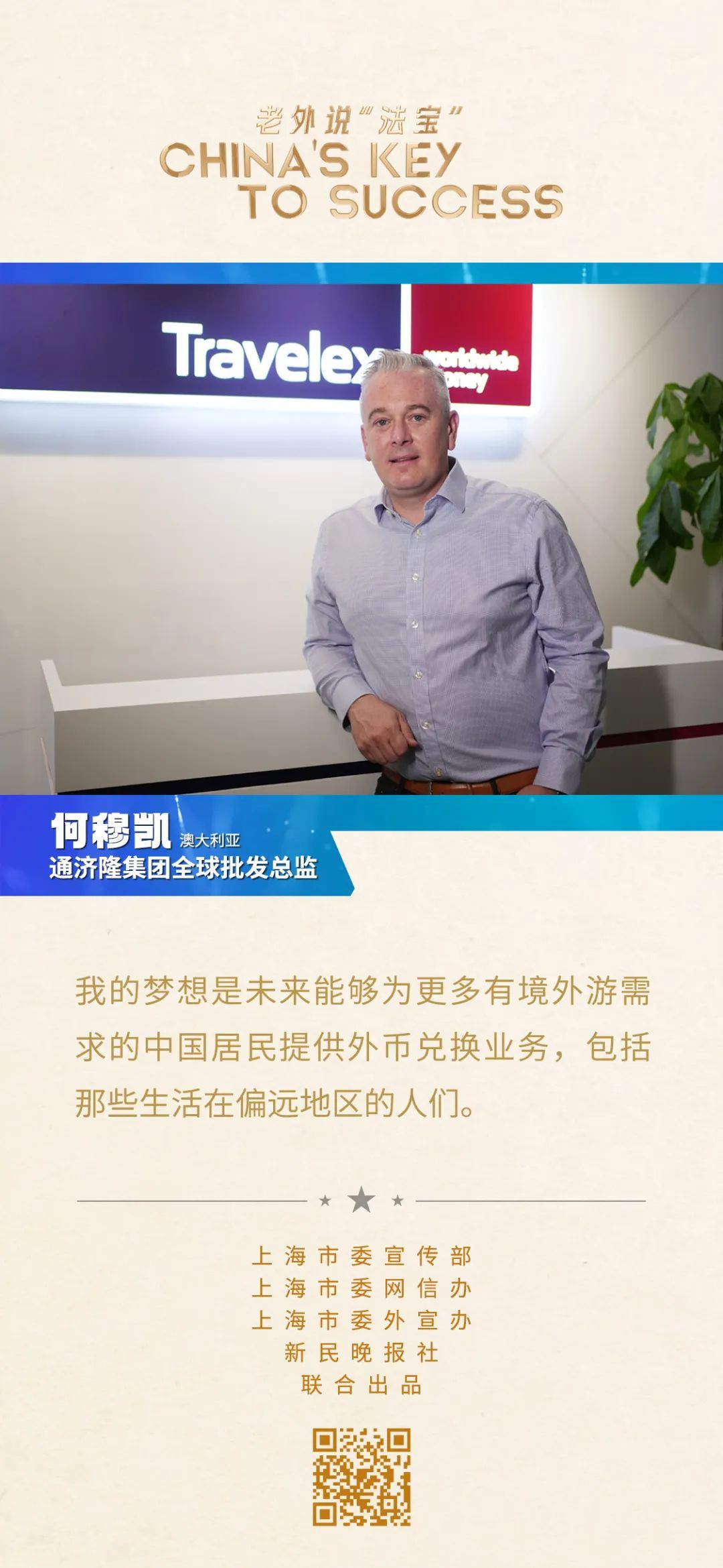 何穆凱所在的通濟隆集團是一家以從事貨幣金融服務為主的企業。這些年,中國出境游市場蓬勃發展,讓這家公司在中國市場取得了巨大成功。“我的夢想是未來能夠為更多有境外游需求的中國居民提供外幣兌換業務,包括那些生活在偏遠地區的人們。”