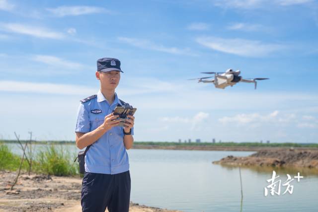 李明霖用無人機航拍紅樹林,觀察記錄保護情況。