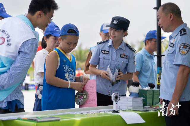 保護紅樹林生態系統國際日,民警們在湛江市區擺攤,科普紅樹林保護知識。