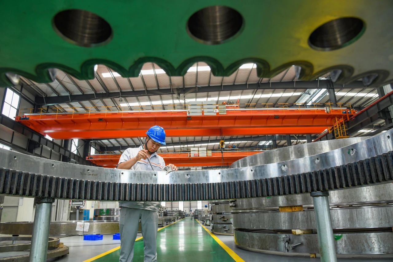 工人加工組裝風電軸承 魯博 攝