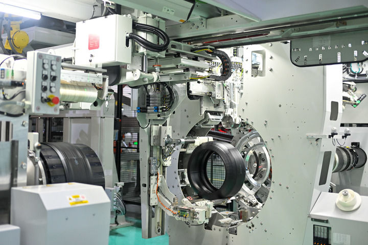 這是2024年7月26日拍攝的浙江杭州中策錢塘實業(yè)有限公司輪胎數(shù)字工廠車間內的自動化輪胎生產線。新華社記者 江漢 攝