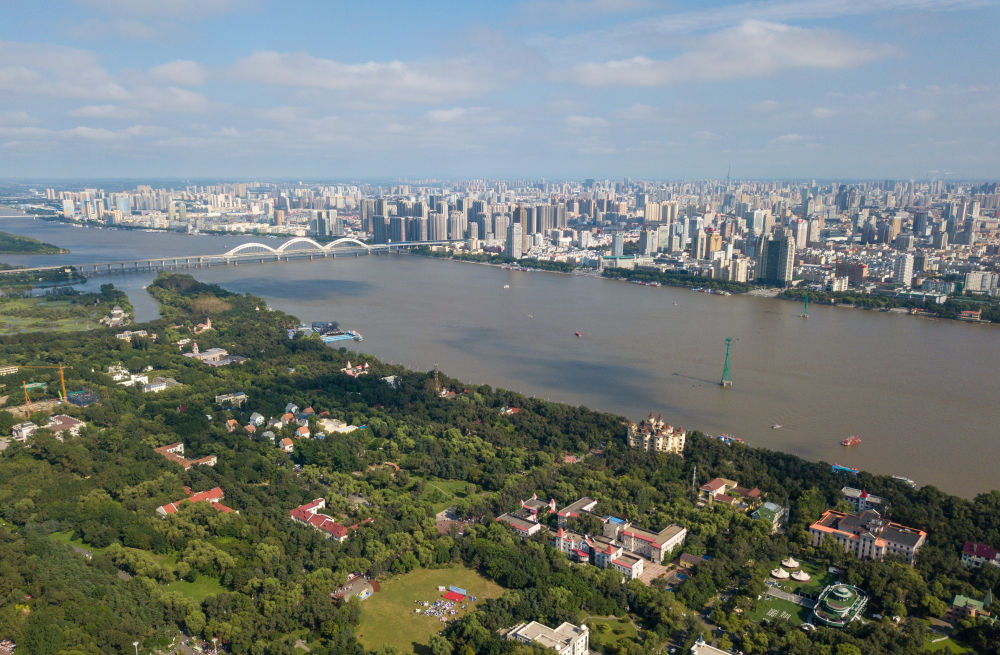 8月20日拍攝的松花江哈爾濱段和太陽島局部(無人機照片)。