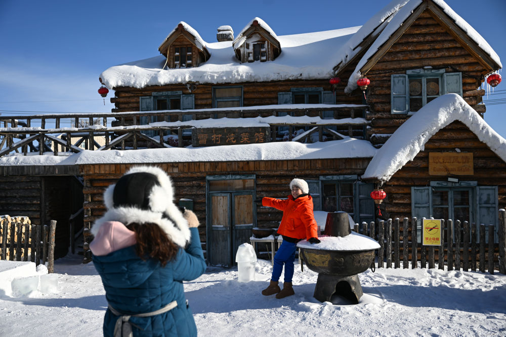 游客在內蒙古興安盟阿爾山市游玩(2023年12月14日攝)。