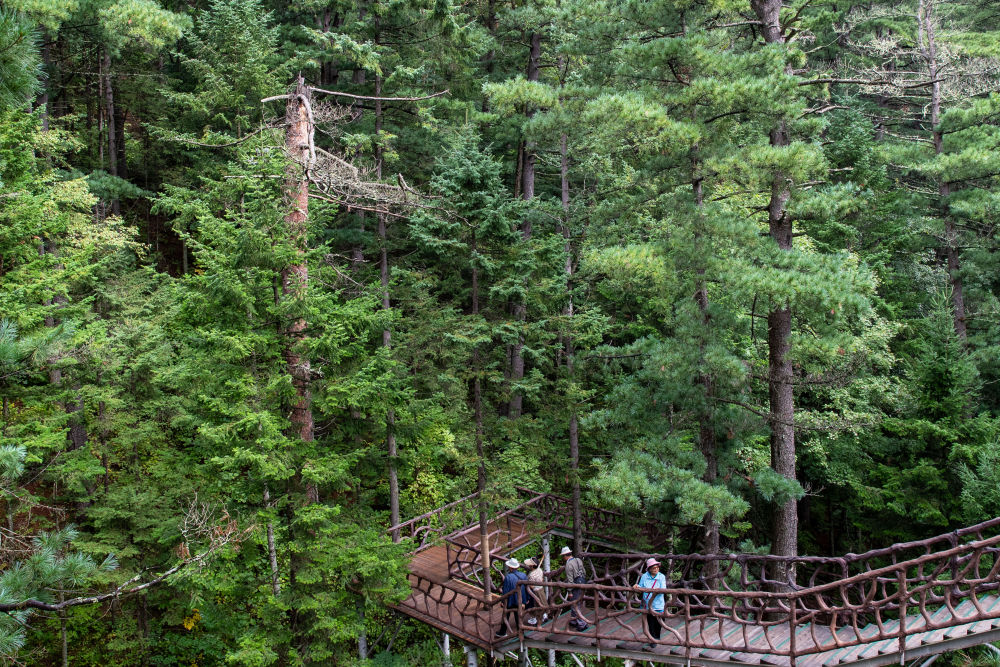 8月27日,游客在黑龍江伊春市上甘嶺溪水國家森林公園內游覽。