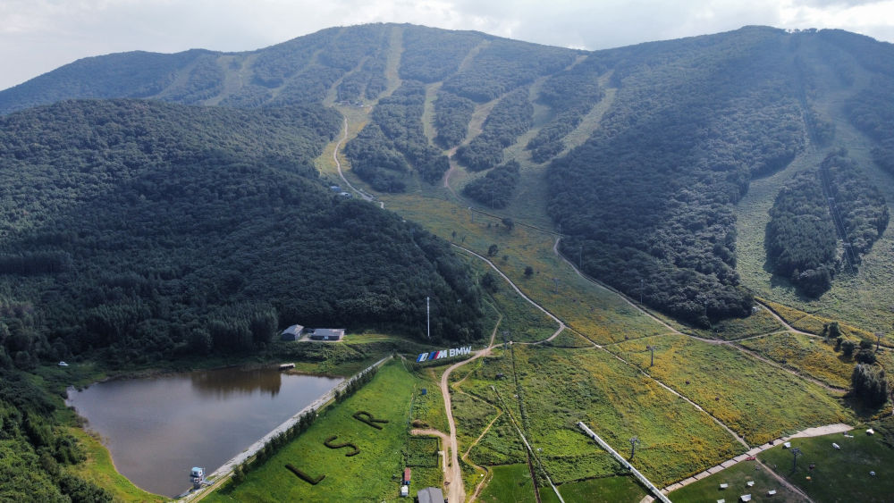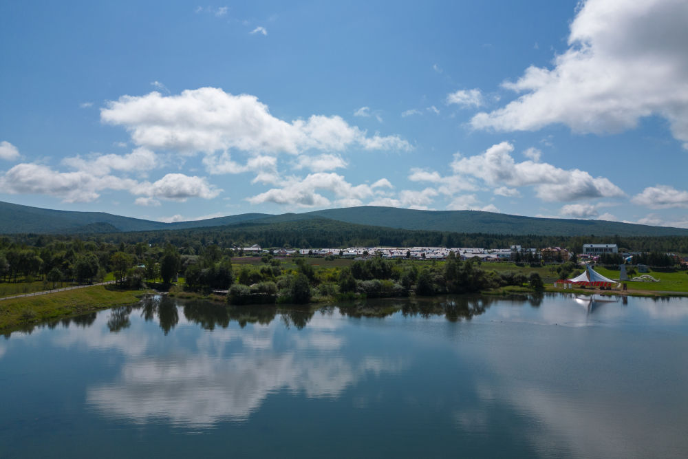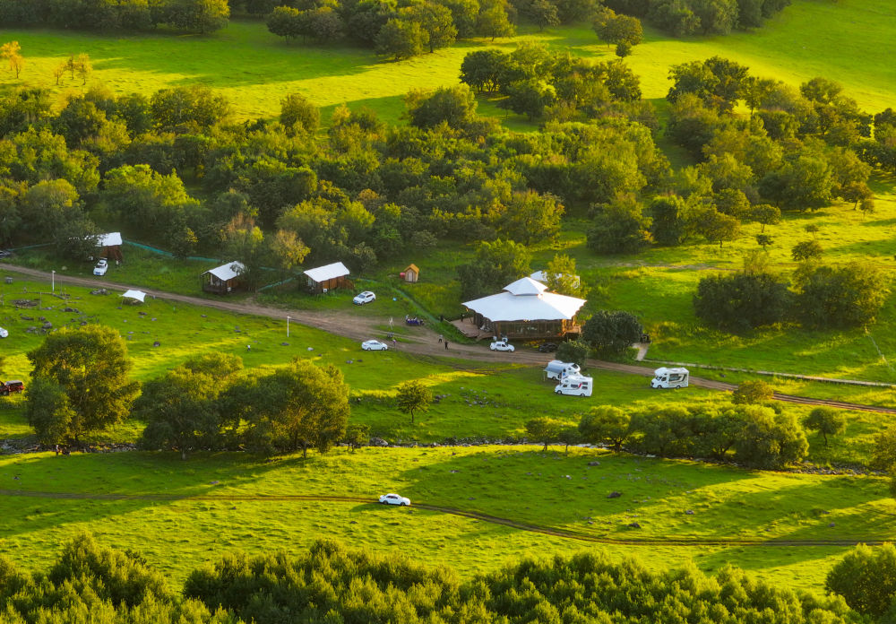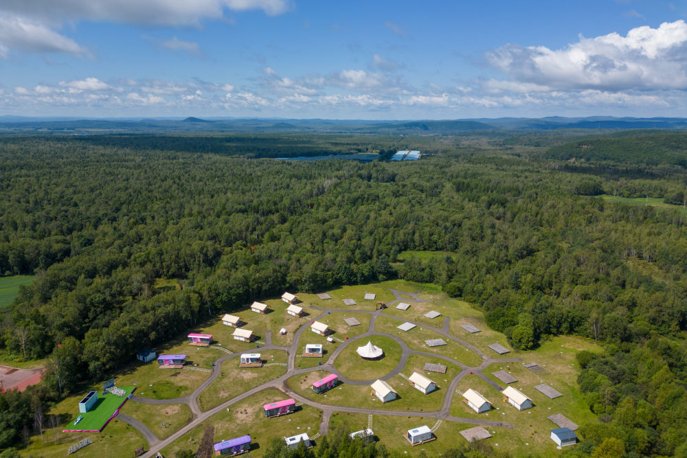 這是8月27日拍攝的黑龍江伊春森工集團上甘嶺林業局公司溪水林場的溪水野奢帳篷度假酒店項目(無人機照片)。