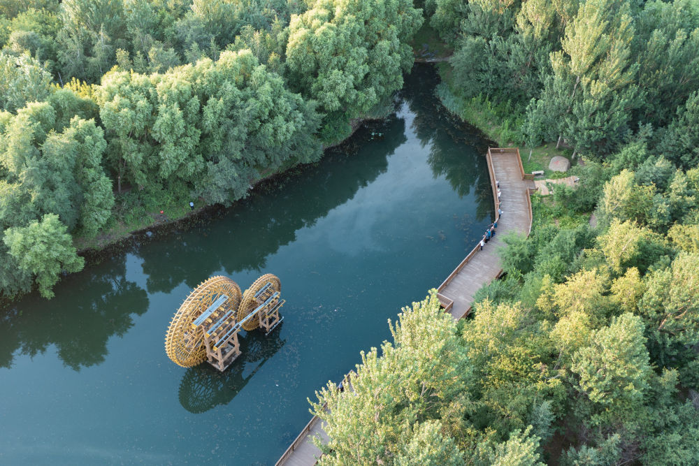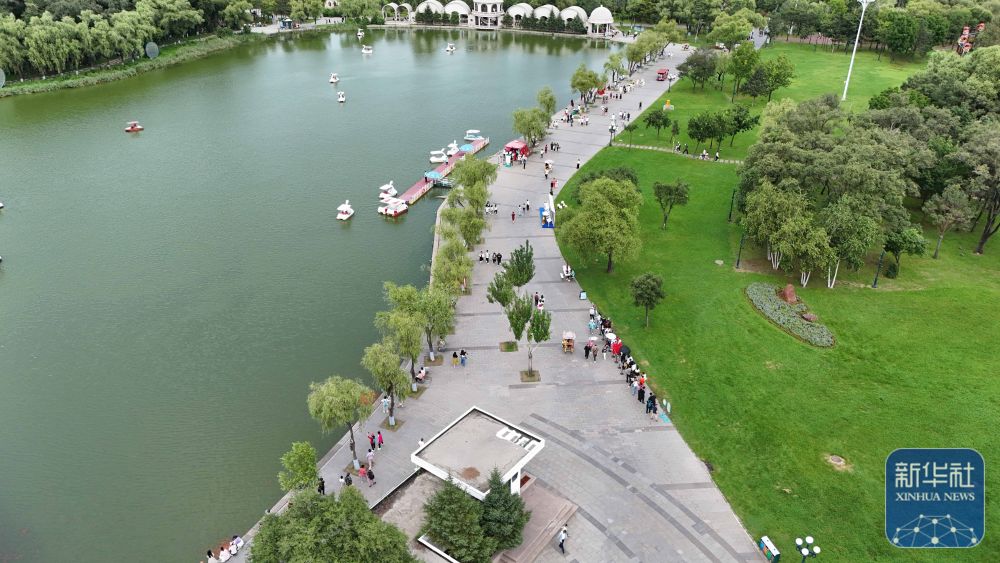 人們在龍江森工集團綏棱林業局生態文化旅游景區一處公園游覽(7月25日攝,無人機照片)。