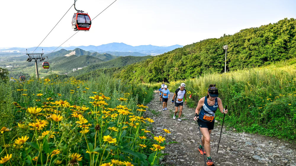 8月24日,越野跑愛好者在吉林市萬科松花湖度假區越野跑。