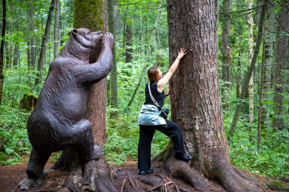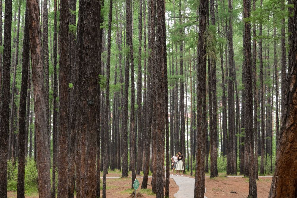 8月27日,游客在黑龍江伊春市上甘嶺溪水國家森林公園內拍照。