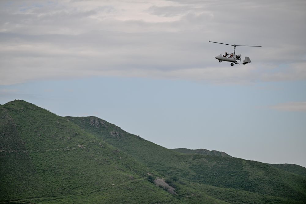 8月8日,游客在內蒙古興安盟科爾沁右翼前旗烏蘭毛都草原乘旋翼機游玩。