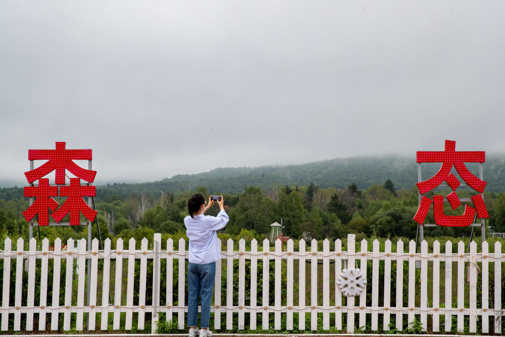 8月27日,一名游客在黑龍江伊春森工集團上甘嶺林業局公司溪水林場拍照。