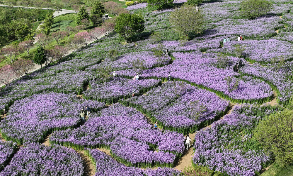 游客在遼寧大連英歌石植物園游覽(5月11日攝,無人機照片)。
