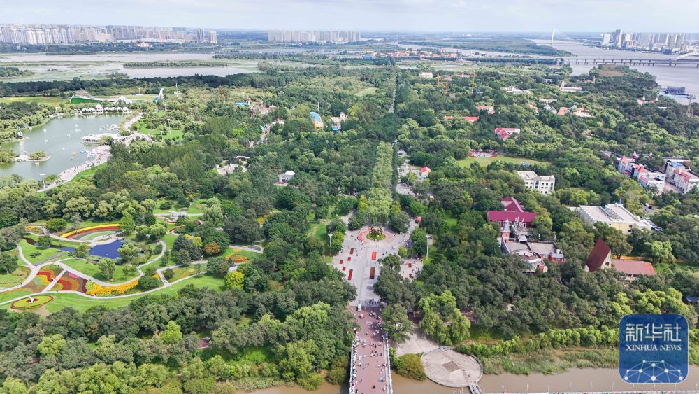 ↑這是哈爾濱太陽島國家濕地公園局部景色(8月20日攝,無人機照片)。