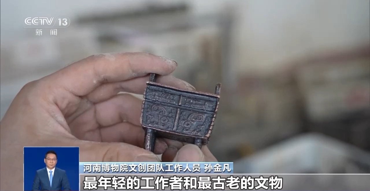 河南博物院文創(chuàng)團(tuán)隊工作人員 孫金凡:做成的時候感覺很有成就感,最年輕的工作者和最古老的文物,我覺得我這對CP組得還真的挺不錯的。