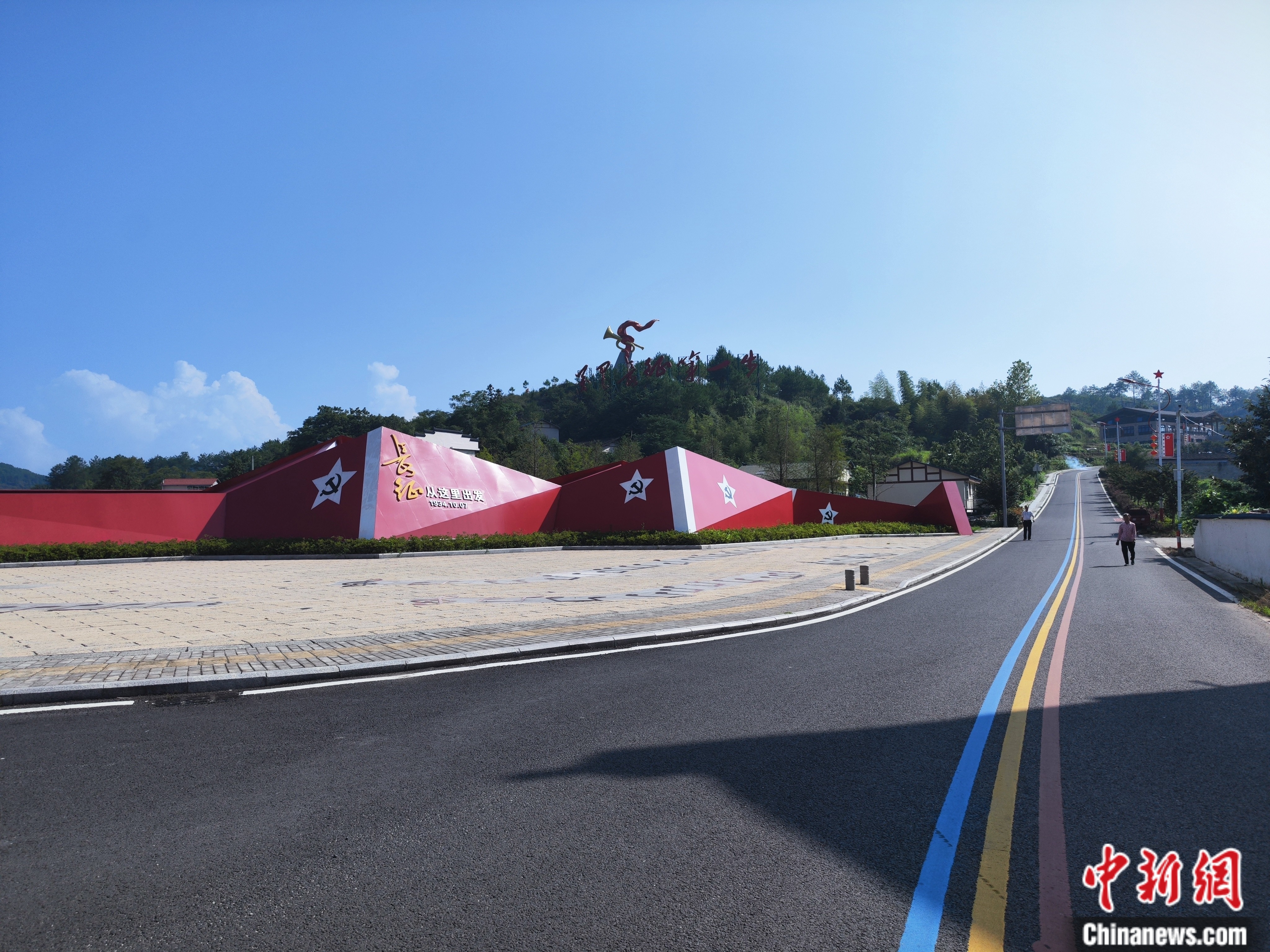 而現在,指指對面山頭上尤為醒目的軍號雕塑,當地村民笑瞇瞇地對記者說:“游客從那邊山頂上下來,沿著這條路去往紅軍街、紅軍井、五通廟,很熱鬧咧!”