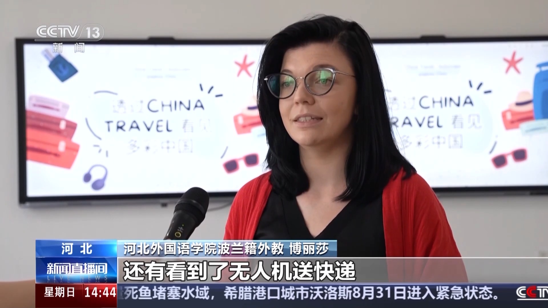 河北外國語學院波蘭籍外教 博麗莎:我去了很多城市,北京、上海、深圳還有雄安新區,除了分享一些美食和美景,我也感受了中國高鐵、移動支付,還看到了無人機送快遞,無人駕駛的公交車、出租車,還有隨處可見的無線充電等智能化設備,這些新奇的變化讓我和我的朋友們都感覺很驚訝,在中國能感受到未來世界的樣子。我想把這些分享給我的學生們,他們有一個很棒的祖國。