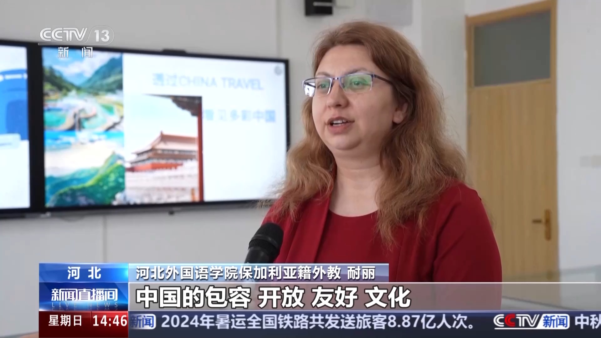 河北外國語學院保加利亞籍外教 耐麗:我是9年之前來到中國的,中國的包容、開放、友好、文化讓我非常喜歡在這里,我在這里也一直看著中國的變化和發展,我希望跟更多人分享我在這里感受到的多彩的中國。