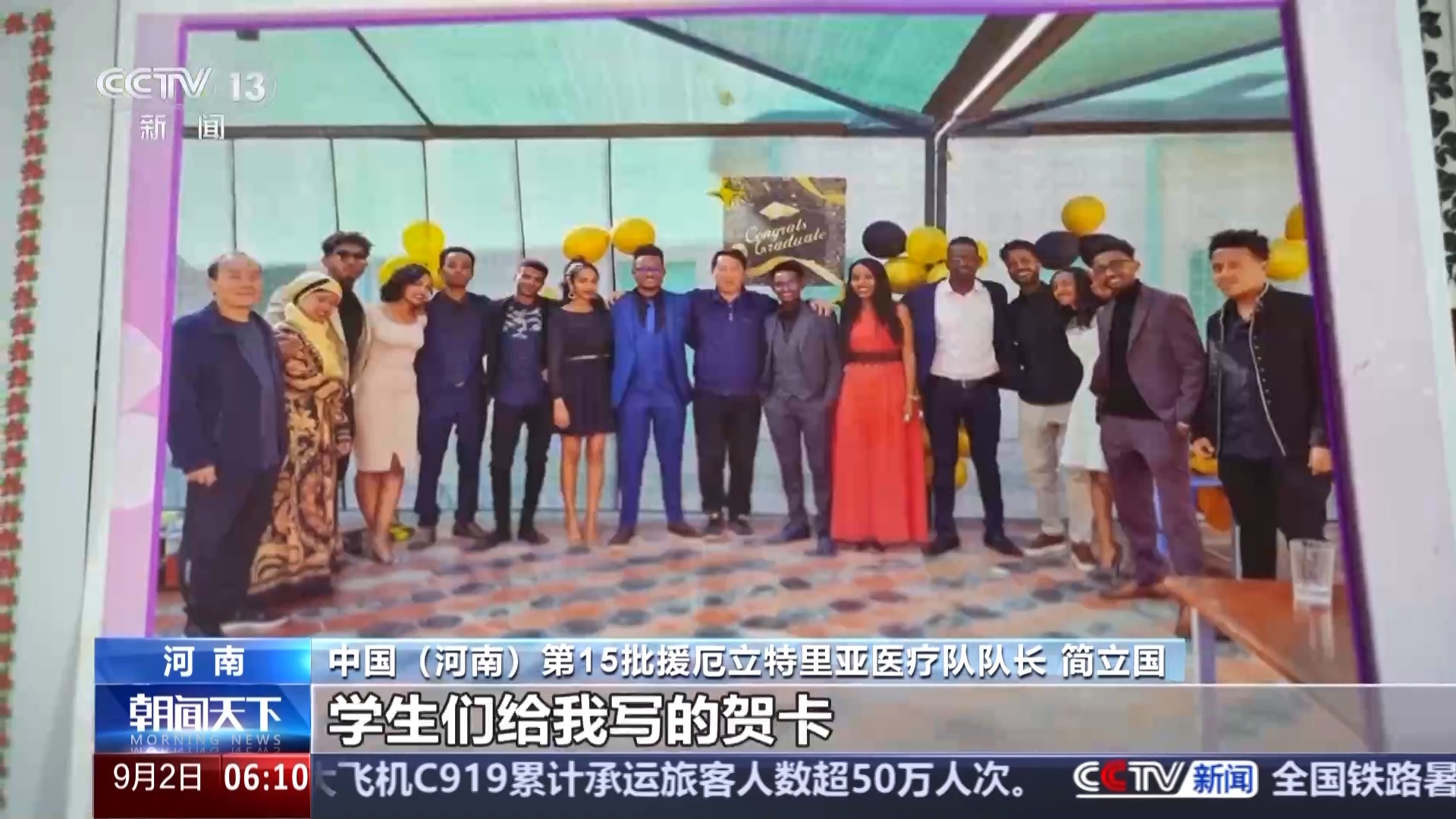 中國(河南)第15批援厄立特里亞醫療隊隊長 簡立國:這是我們醫療隊培養的16名醫學生,他們現在都成為厄立特里亞的中堅力量了。學生們給我寫的賀卡也是中厄友誼的見證。