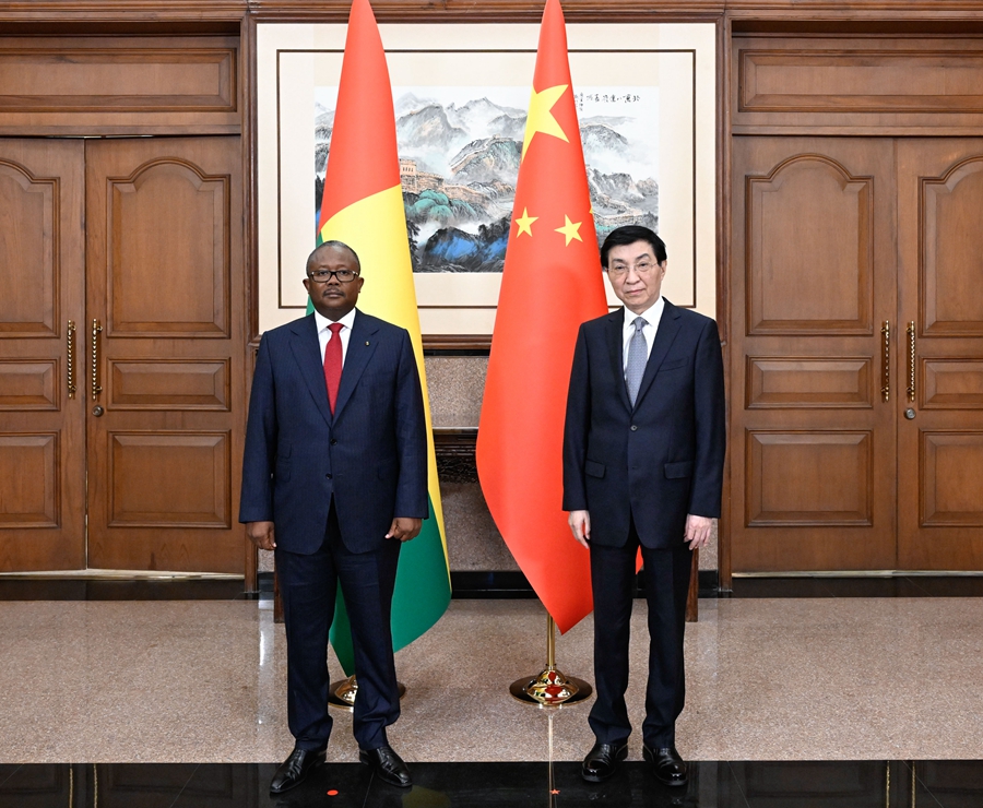 全國政協主席王滬寧3日在京會見來華出席中非合作論壇北京峰會的幾內亞比紹總統恩巴洛。