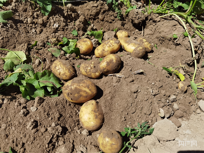 管護人員一鏟子下去,幾顆表皮光滑的馬鈴薯便破土而出(央廣網記者 夏莎 攝)
