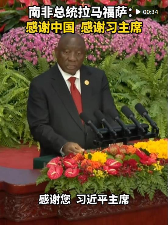 南非總統拉馬福薩5日在中非合作論壇北京峰會開幕式上說,中國與非洲人民的友誼和團結源遠流長。“我們感謝中國長期以來致力于與非洲大陸擴大合作、協同發展。感謝您,習近平主席。”
