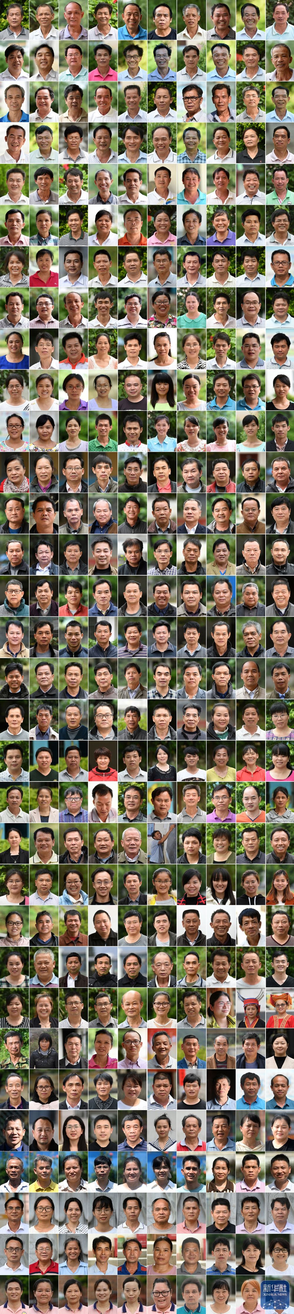 ↑這是2012年至今拍攝的廣西20多個縣區(qū)130多所大山學(xué)校320名教師的肖像,其中有不少是“80后”“90后”教師(拼版照片)。