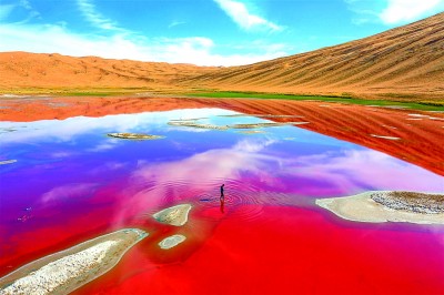 被沙丘環繞的扎拉特湖。哈斯巴根攝