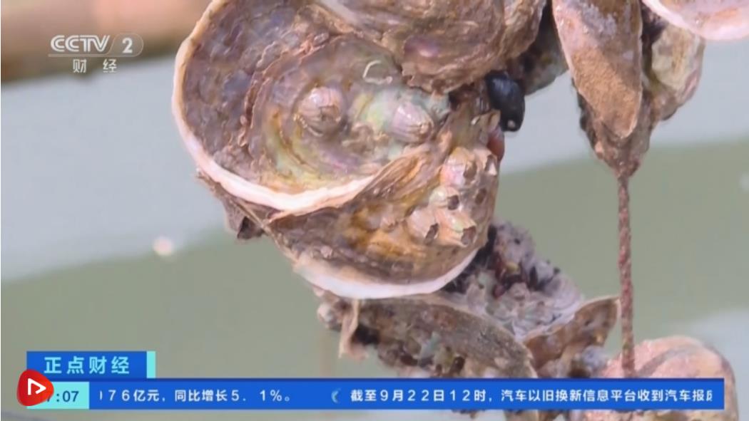 通過水下鏡頭可以看到,蠔苗被放下去的時候就固定在了水泥石餅上,每串石餅大約固著有40個。養殖戶們說,這種吊樣的方式不僅讓生蠔長得好,還能方便捕撈。像1.6畝大小的蠔排可以吊養蠔苗大概1.2萬串,整個基地蠔苗的年產量達13.45萬噸。