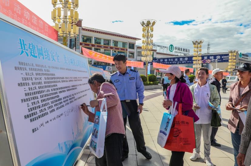 網絡安全人人有責,網絡安全人人參與。近期,林芝市各級公安機關以國家網絡安全宣傳周以契機,深入社區廣場、大學校園、鄉鎮村居等,用通俗易懂的“大白話”說事明理,用“家常話”解讀“大政策”,用“小故事”闡釋“大道理”,向群眾積極宣傳解讀《中華人民共和國網絡安全法》《中華人民共和國個人信息保護法》等法律法規,引導群眾認識網絡安全基礎知識、常見網絡安全威脅等內容,提升人民群眾網絡安全防護意識和能力水平。同時,民警以案釋法向群眾通報近年來公安機關依法重拳打擊各類網絡亂象取得的成效,號召廣大群眾做正能量的傳播者、網絡安全的維護者,警民攜手共筑網絡安全“防火墻”。