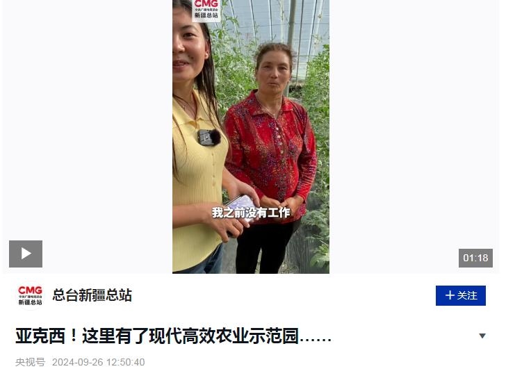 阿依謝姆古麗,在新疆喀什地區(qū)疏勒縣的山東省援疆項目“蔬樂”現代高效農業(yè)示范園,從事西瓜種植工作已經兩年了。“作為農民的她,之前沒有收入。”談到這份工作,阿依謝姆古麗激動得熱淚盈眶。