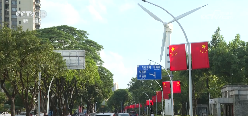 在廣東深圳,公園、廣場(chǎng)、街道上,處處可以看到五星紅旗迎風(fēng)飄揚(yáng)。紅旗與藍(lán)天、綠樹(shù)、高樓交相輝映,為城市增添了濃濃的節(jié)日氛圍。