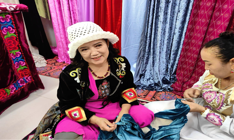 將傳統手工藝轉化為商品,市場化推進,托云牧場不懈探索手工藝與鄉村振興的新路徑,助力當地手工藝人將“指尖技藝”轉化為“指尖經濟”。維吾爾族姑娘努力曼古麗·買加買提分享道:“在刺繡合作社,我與柯爾克孜族的姐妹互相切磋學習,通過刺繡工藝的差異,我們發現了各民族刺繡的獨特風格,同時發現很多共通的地方。在彼此互相了解學習的過程中,感受到了各民族文化的相互交融與共同進步。”