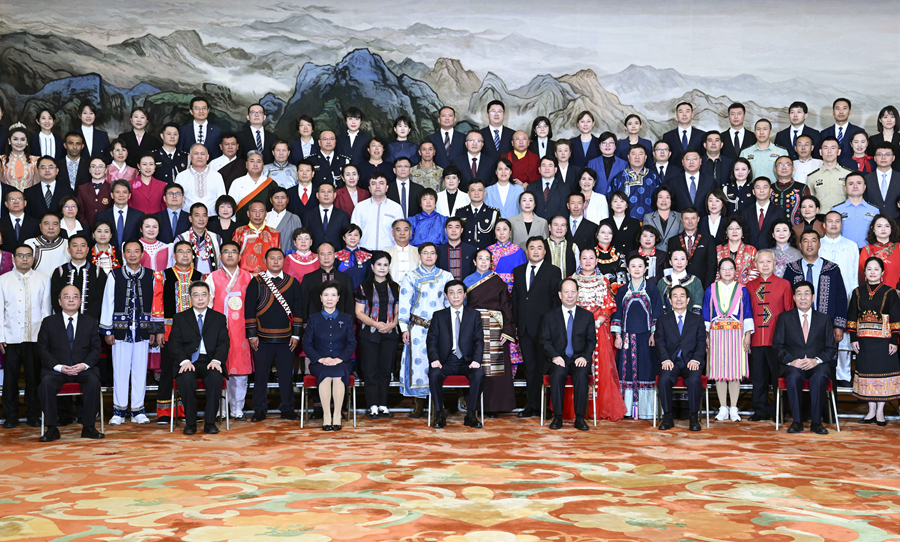 9月29日,中共中央政治局常委、全國政協主席王滬寧在北京會見全國少數民族參觀團。新華社記者 張領 攝
