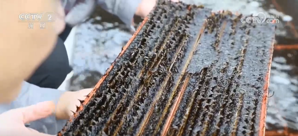 在福建省連江縣官塢村海帶育苗基地,黑壓壓的海帶苗整齊有序地平鋪在流動的海水里。漁民將一塊塊苗簾從苗池里打撈上來,解開繩結裝入泡沫箱中,準備陸續運往大連。 這批海帶苗是當地自主培育的海帶苗,具有耐高溫、產量高等特點,成活率超過95%,往年在大連海區養殖5到6個月時間,畝產新鮮海帶可達30—35噸。