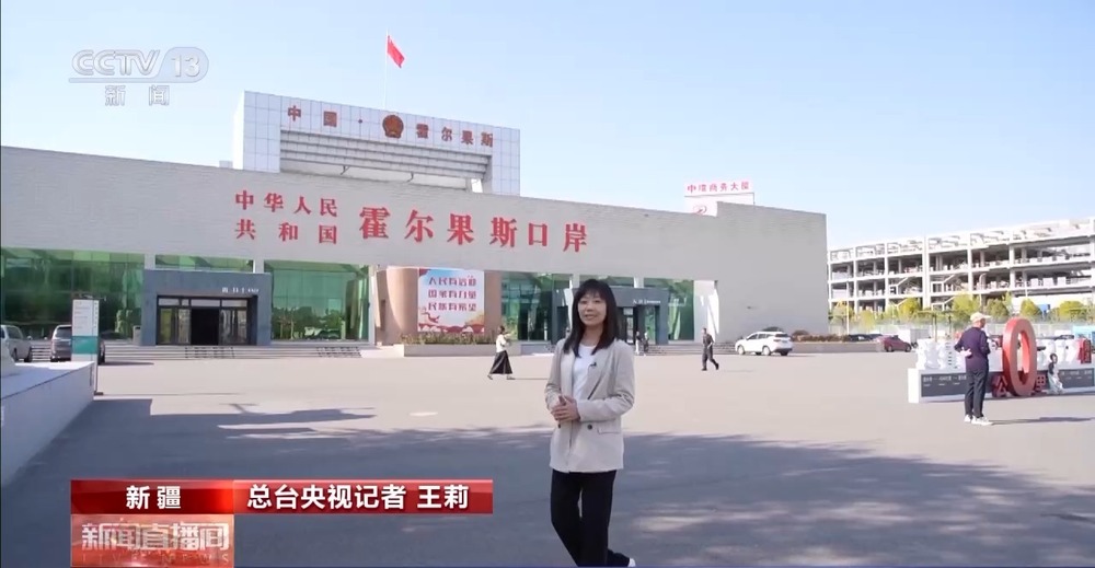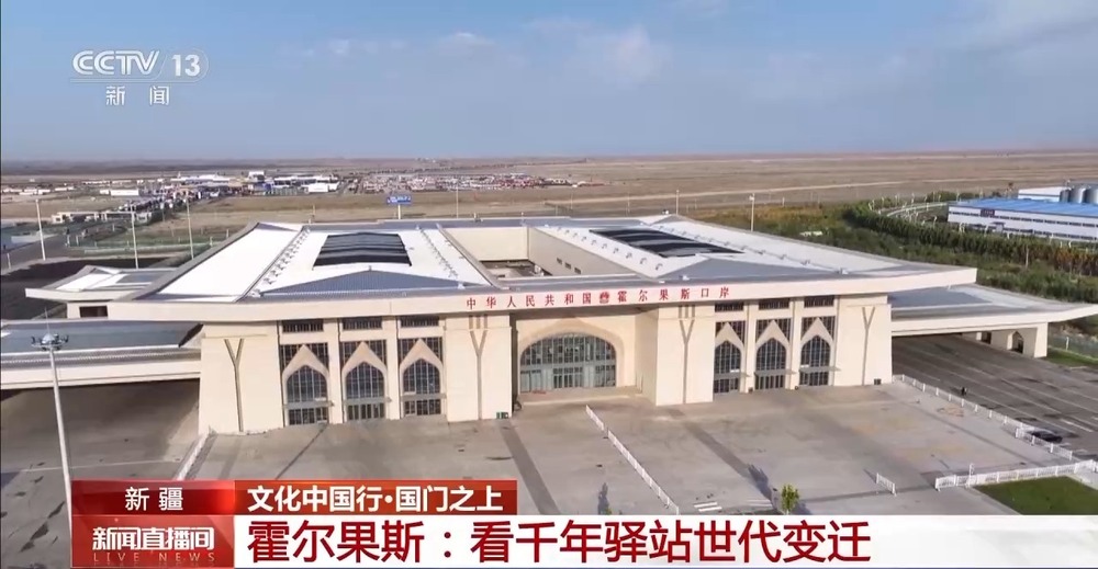總臺(tái)央視記者 王莉:這里是位于新疆伊犁哈薩克自治州的霍爾果斯公路口岸,這座巍峨雄偉的建筑就是霍爾果斯第六代國(guó)門,這里與哈薩克斯坦隔河相望,是中國(guó)向西開放的重要窗口和連接亞歐大陸的“黃金口岸”。千年以前,霍爾果斯就是古絲綢之路上的重要驛站,一百多年前,霍爾果斯公路口岸正式通關(guān),從20世紀(jì)50年代的第一代國(guó)門,到如今的第六代國(guó)門,國(guó)門的變遷,見證著霍爾果斯的這座邊境城市的蓬勃發(fā)展。