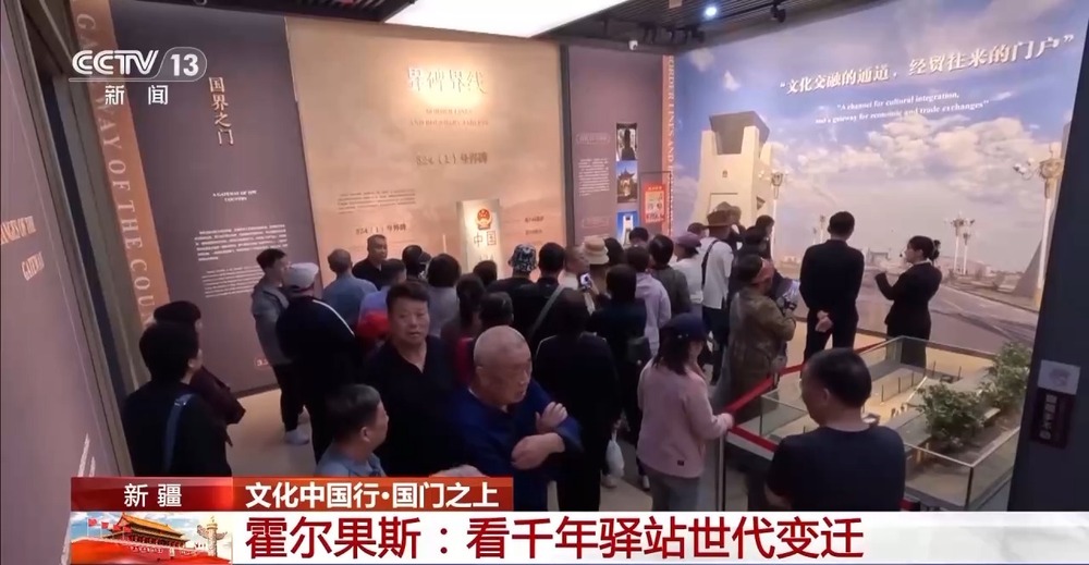 總臺(tái)央視記者 王莉:從霍爾果斯第六代國(guó)門向北,就來到了第五代國(guó)門。如今第五代國(guó)門雖然已經(jīng)不再承擔(dān)國(guó)門的功能,但是當(dāng)?shù)匕阉慕ǔ闪嘶魻柟箛?guó)門文化展示館,通過文字、圖片、視頻向大家講述著國(guó)門的變遷,口岸的歷史。