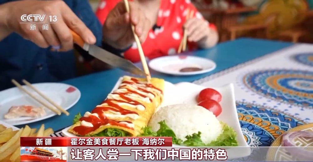 霍爾金美食餐廳老板海納爾:我開這個(gè)餐廳,兩個(gè)國(guó)家的廚師帶過來,讓客人嘗一下我們中國(guó)的特色,哈方的特色,我們繼續(xù)努力,繼續(xù)干。
