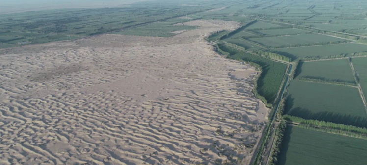 荒山寂寥鳥影絕,古道蒼茫人跡滅。七秩之前,新疆塔克拉瑪干沙漠便呈現此般荒涼之景,人跡罕至。沙漠邊緣的城郭,長年累月經風沙侵蝕,經濟發展始終受限。新中國的誕生,為那片曾經貧瘠荒涼的沙漠帶來了生機。一群英勇的人們,懷揣著堅定的信念,將這里取名阿拉爾(蒙古語:匯聚)展開了一場又一場浩大的防沙治沙戰役。從那一刻起,新疆大地上演了一幕幕令人贊嘆的生態修復傳奇,為沙漠披上了一層層的綠色紗衣。