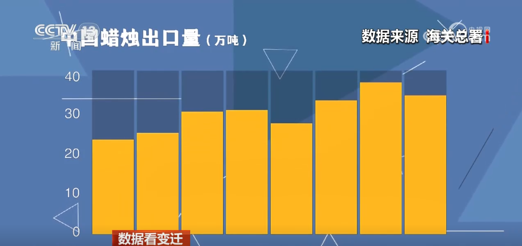 隨著電力普及,蠟燭在國內逐漸淡出人們的視線,但卻在海外大放異彩。近10年來,我國蠟燭年度出口量邁過30萬噸關口,和中國綠茶一年的出口量相當。中國蠟燭“漂洋過?!比ネ?60多個國家和地區,穩坐全球蠟燭貿易“頭把交椅”。國內蠟燭相關企業增加到約1.02萬家,近50%的企業成立于10年之內,傳統的蠟燭產品向高附加值邁進。