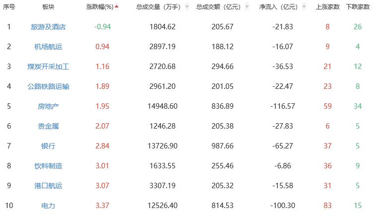 A股市場(chǎng)板塊漲跌幅排行