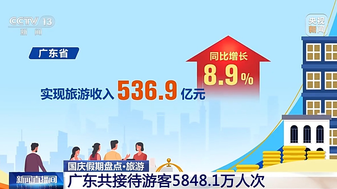 廣東省10月1日至7日累計接待游客5848.1萬人次,按可比口徑同比增長6.2%;實現(xiàn)旅游收入536.9億元,同比增長8.9%。古驛道沿線重點區(qū)域、紅色旅游經(jīng)典景區(qū)、鄉(xiāng)村旅游點和歷史古村落等,成為旅游出行熱點。