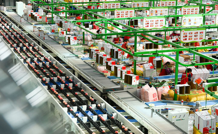 工作人員在延安市洛川縣一家果業(yè)企業(yè)打包蘋(píng)果(2023年10月20日攝)。新華社記者 鄒競(jìng)一 攝