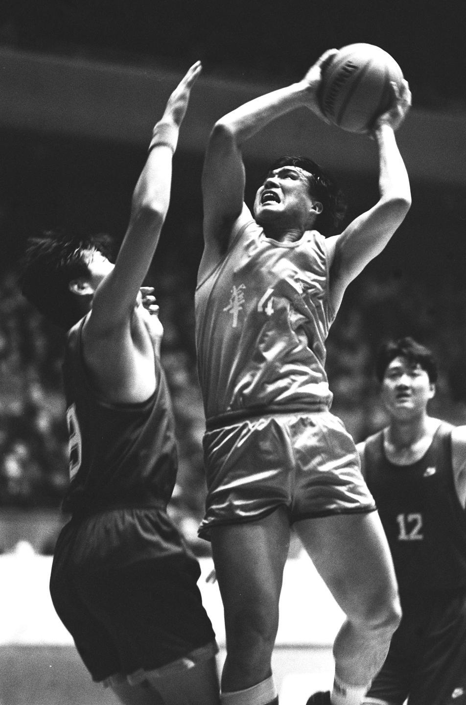 1995年4月2日,在全國男子籃球甲級八強賽南京賽場比賽中,南京軍區隊81比72主場戰勝吉林隊。南京隊主力4號凌小龍一人獨得27分,為全場得分最高的隊員。這是凌小龍突破上籃。1995年是中國籃球聯賽職業化改革首年。新華社記者 楊磊攝