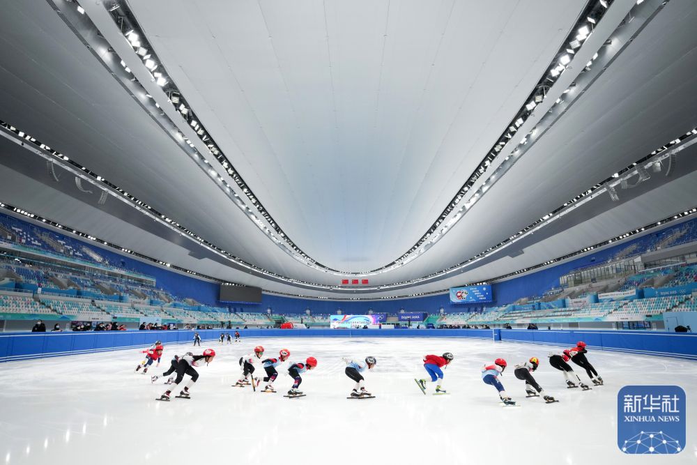 2023年1月6日,小朋友們在國家速滑館進行短道速滑訓練展示。新華社記者 鞠煥宗攝