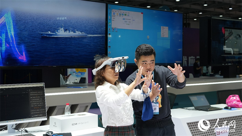 觀眾在新媒體技術展進行AR互動體驗。人民網記者 吳茜薇攝
